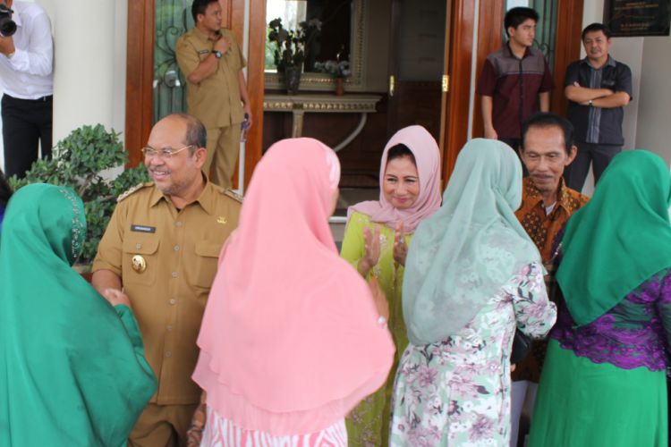 Bupati Ismunandar dan istri Hj Encek UR Firgasih dan keluarga saat menggelar open house lebaran tahun lalu dan dihadiri kalangan pegawai maupun masyarakat. ©2017 Merdeka.com