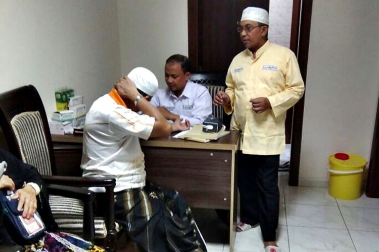 Salah seorang calon haji Kutim memeriksakan kesehatannya menjelang wukuf. ©2016 Merdeka.com