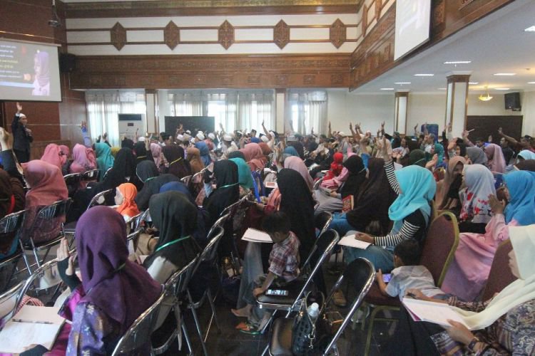 Ratusan generasi muda bersemangat mengikuti training menghafal Al-Quran dengan metode cepat di ruang Meranti kantor bupati. ©2017 Merdeka.com