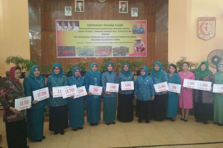 Salah satu contohnya, Tim PKK Kaltim bekerjasama dengan Dinas Pangan, Tanaman Pangan dan HortiKultura membagikan bibit lombok kepada pengurus Tim Penggerak PKK se-Kaltim. PKK Kutim sendiri kebagian 37.500 bibit pohon dan akan disebar ke seluruh PKK kecamatan.