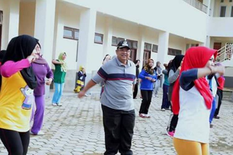 Bupati Ismunandar berbaur dengan masyarakat ikut senam gemu famire untuk memasyarakatkan olahraga sekaligus bersilaturahmi. ©2017 Merdeka.com