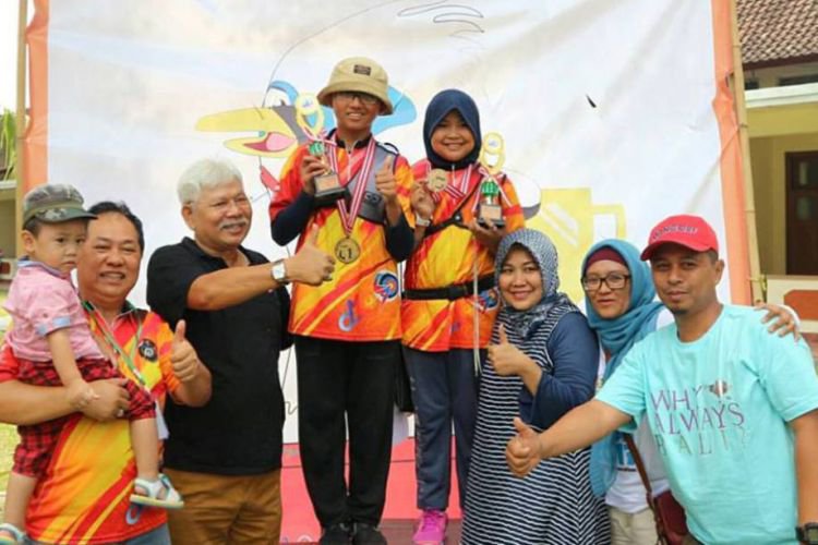 Dua atlet pemanah archery Kutim usai menerima pengalunga medali foto bersama dengan kaluarga dan pelatihnya serta pembinanya, lantaran membanggakan atas prestasi yang diraihnya. ©2017 Merdeka.com