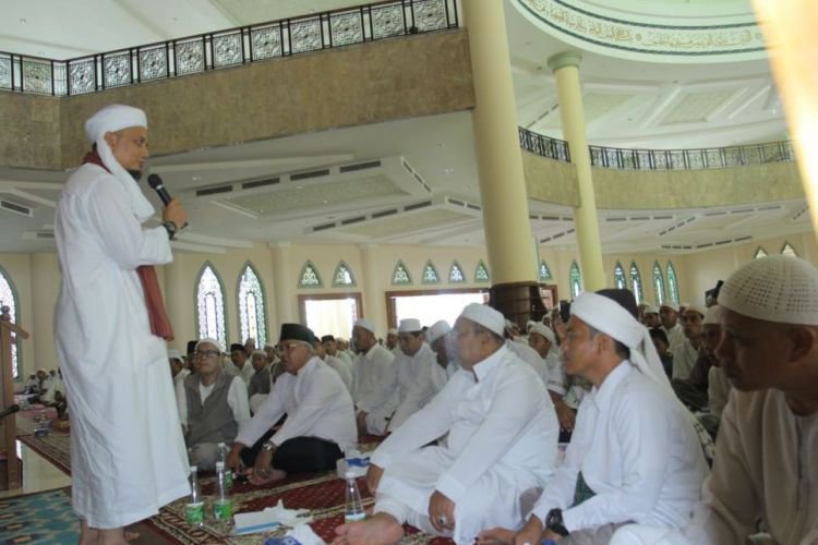 KH Arifin Ilham ketika memberikan tausiah dan memimpin dzikir bersama di masjid Al-Faruq, Sabtu (21/10) kemarin, dihadiri bupati Ismunandar, Seskab Irawansyah dan ratusan masyarakat. ©2017 Merdeka.com