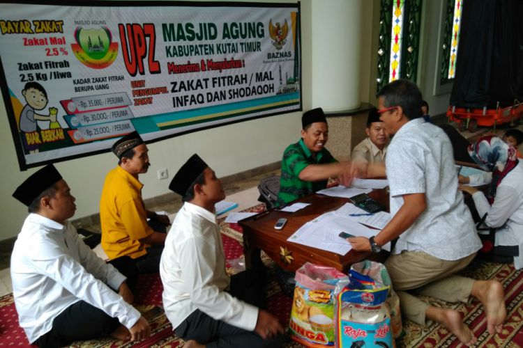 “Pengurus Masjid Agung, di Komplek Islamic Center, Bukit Pelangi Sangatta melalui Unit Pengumpul Zakat (UPZ) terus menerima zakat fitrah, zakat maal, fidyah, shodaqoh, infaq dari masyarakat. Usai shalat dzuhur, warga terlihat antre untuk membayarkan zakatnya,” kata Muhammad Fadil, salah seorang petugas pengumpul zakat di masjid Agung.