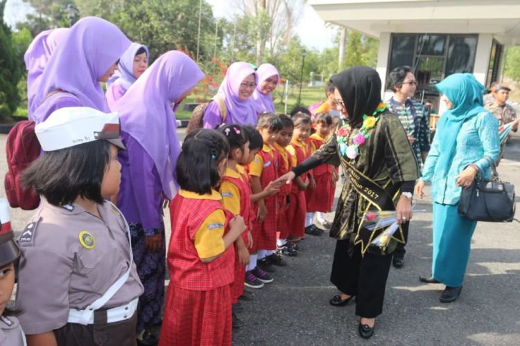 Merdeka.com, Kutai Timur - Sekembalinya dari Tangerang, Banten, Bunda PAUD (Pendidikan Anak Usia dini) Kabupaten Kutai Timur (Kutim) Hj Encek UR Firgasih mendapat sambutan hangat oleh para guru PAUD dan pengurus TP PKK di rumah jabatan Bupati, di Bukit Pelangi, Sangatta, Minggu (26/11) lalu. Selain para guru PAUD, juga ada puluhan siswa PAUD dari Sangatta turut menyalami Bunda PAUD.