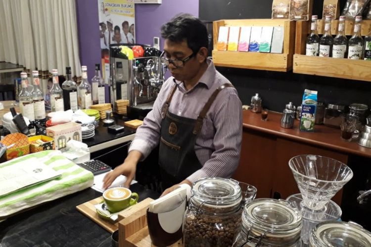 Syahril, sang pemik saat membuat minuman untuk disajikan kepada pelanggannya di rumah koffie. ©2017 Merdeka.com