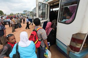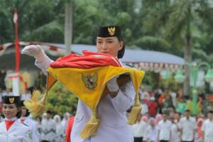 Hati Jumiati berdegub kencang, ketika bendera yang dibawanya diterpa angin