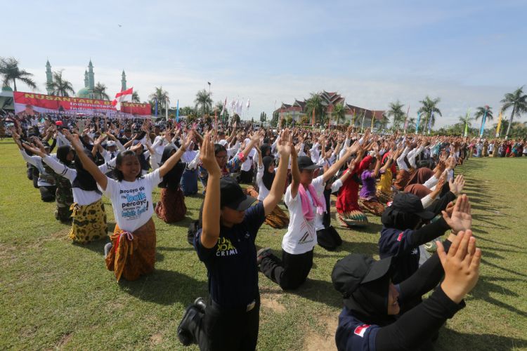 Penampilan tarian massal yang juga melambangkan keberagaman rakyat Indonesia ini didukung oleh Kadisdikbud Iman Hidayat sebagai penasehat, Nurrahmi Asmalia dan I Ketut Puriata selaku pambina. Tarian yang dinamis dan serentak di bawah binaan penata gerak Supartini ini begitu menarik diperagakan oleh siswa-siswi waktu itu. Mengenakan pakaian berbeda warna, suku dan agama di Indonesia.