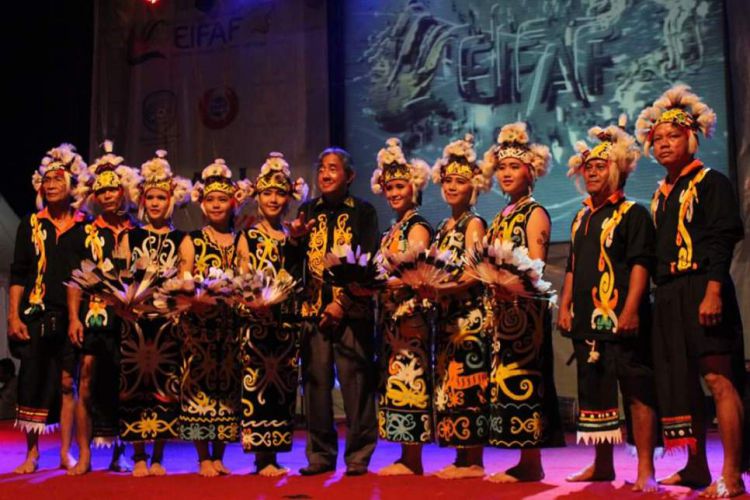 Tim kesenian Kutim yang menampilkan 'exotika Kutim' berfoto bersama dengan Halidin Katung sesuai tampil pada acara pembukaan Erau beberapa waktu lalu. ©2016 Merdeka.com
