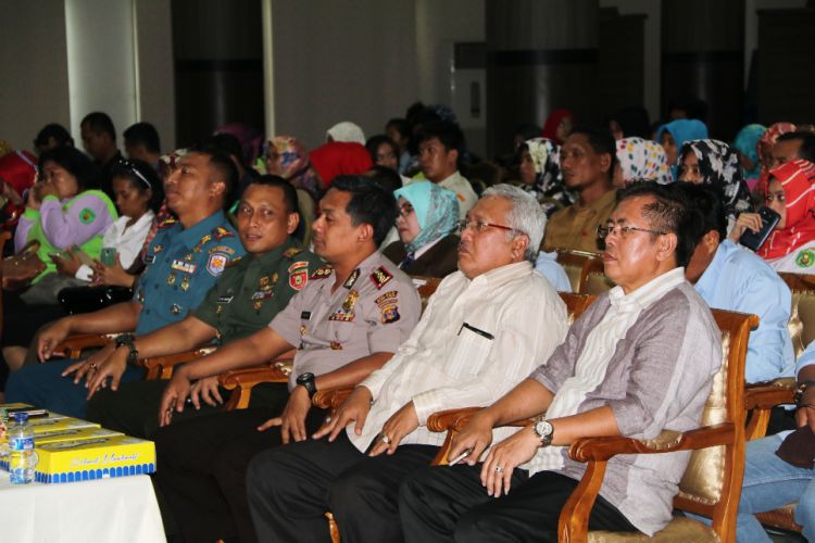 Sekda Irawansyah, Dandim Letkol Inf Setyo Wibowo, Kapolres AKBP Rino Eko, anggota DPRD Harpandi dan sejumlah pejabat lainnya ketika nonton bareng film 'diare of sara' di Gedung Serba Guna Bukit Pelangi. ©2016 Merdeka.com