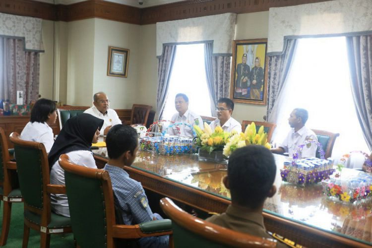 Bupati Ismunandar menerima rombongan pelajar dan guru SMA Negeri 2 Sangatta yang akan bertolak ke Maluku ikut pameran seni rupa tingkat nasional. ©2017 Merdeka.com