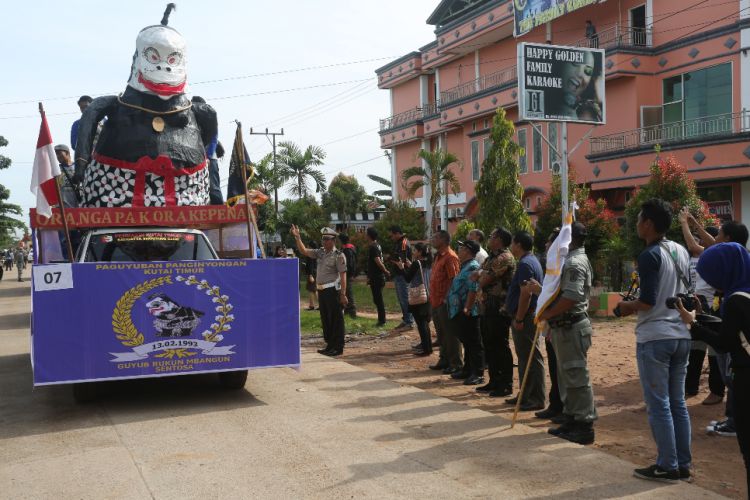 Tampak hadir mengikuti kirab budaya dari bibir jalan antara lain Wabup Kasmidi Bulang, Sekretaris Kabupaten Irawansyah, Kasdim 0909 Sangatta Mayor Inf Syawaluddin, dan beberapa pejabat lingkup Pemkab Kutim lainnya. Ribuan masyarakat juga tampak antusias menyaksikan kirab budaya di setiap sudut jalan yang dilintasi, yakni mulai jalan Sudirman, Diponegoro, EA Moeis, Yos Sudarso hingga berakhir di Taman Bersemi.