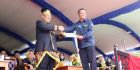 Perwakilan MURI melalui Sri Widayati memberikan piagam penghargaan ke Bupati Kutim Ismunandar setelah menyaksikan penampilan pemecahan rekor penari dalam jumlah terbanyak.