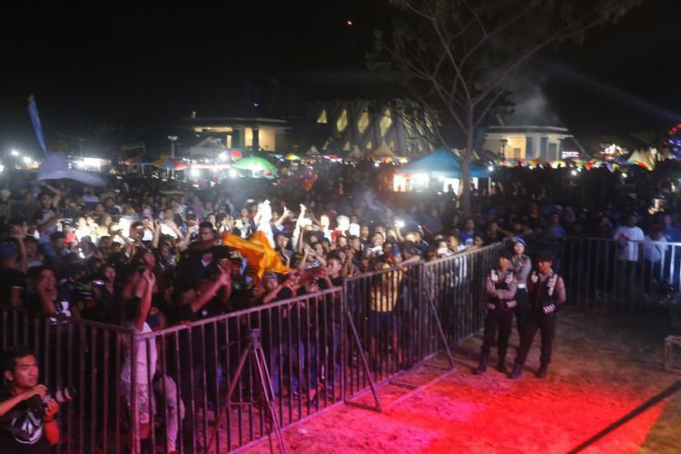 Ribuan masyarakat 'terhipnoti' dengan penampilan artis penyanyi dangdut dari ibukota yang tampil pada acara panggung hiburan rakyat berkiatan HUT ke-18 Kutim. ©2017 Merdeka.com