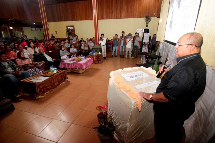 Bupati Ismunandar ketika memberikan sambutan pada acara nonton bareng film sedeng sang yang menembus festival film internasional, karya anak Kutim. ©2017 Merdeka.com