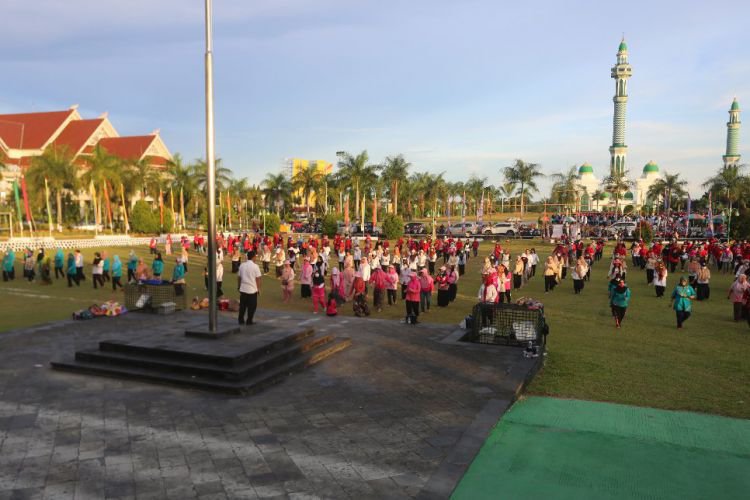 Ribuan masyarakat sedang melakukan latihan tarian Jepen untuk mengisi pada acara HUT ke-18 Kutim pada 12 Oktober nanti di halaman kantor bupati. ©2017 Merdeka.com