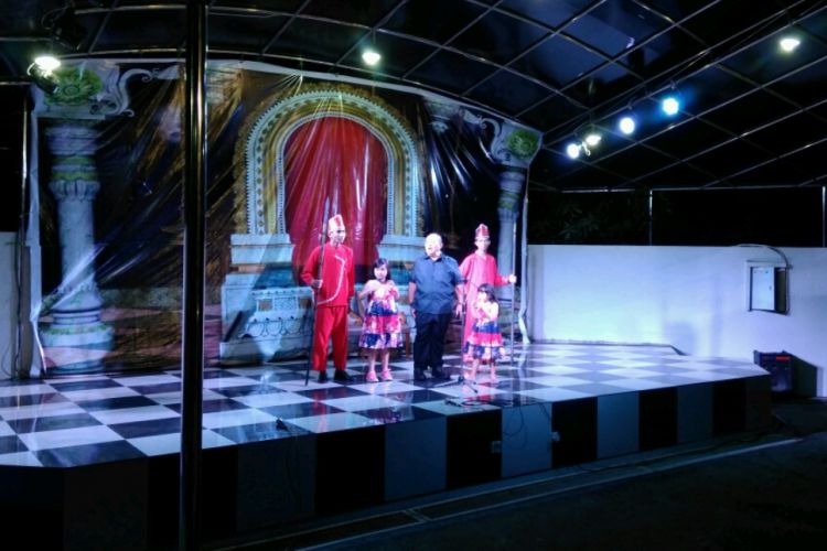 Bupati Ismunandar bersama pemain teater Mamanda usai tampil di halaman belakang rumah jabatan bupati, kawasan Bukit Pelangi. ©2017 Merdeka.com